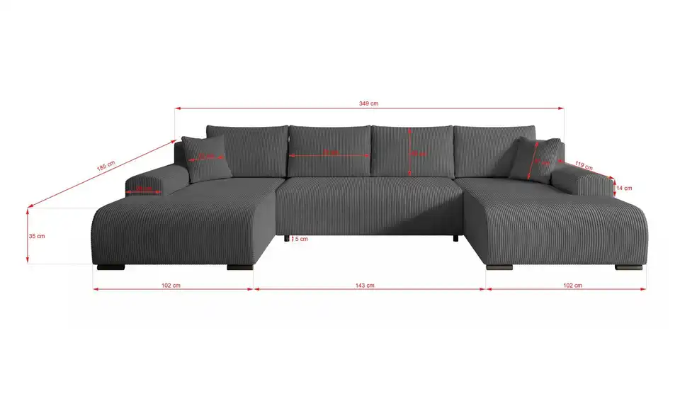 - Lieferumfang / mitgeliefertes ZubehörEcksofa, Kissen, Aufbauanleitung