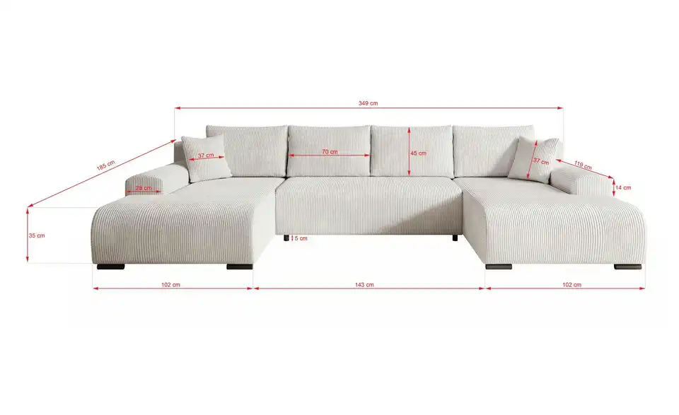 - Gesamtbreite349 cm