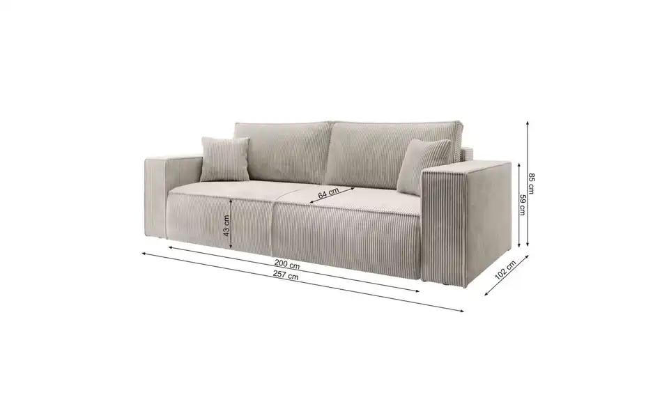 - Lieferumfang / mitgeliefertes Zubehör1 Schlafsofa mit 2 Zierkissen