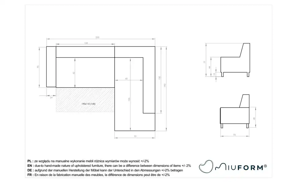 - Gesamtbreite253 cm