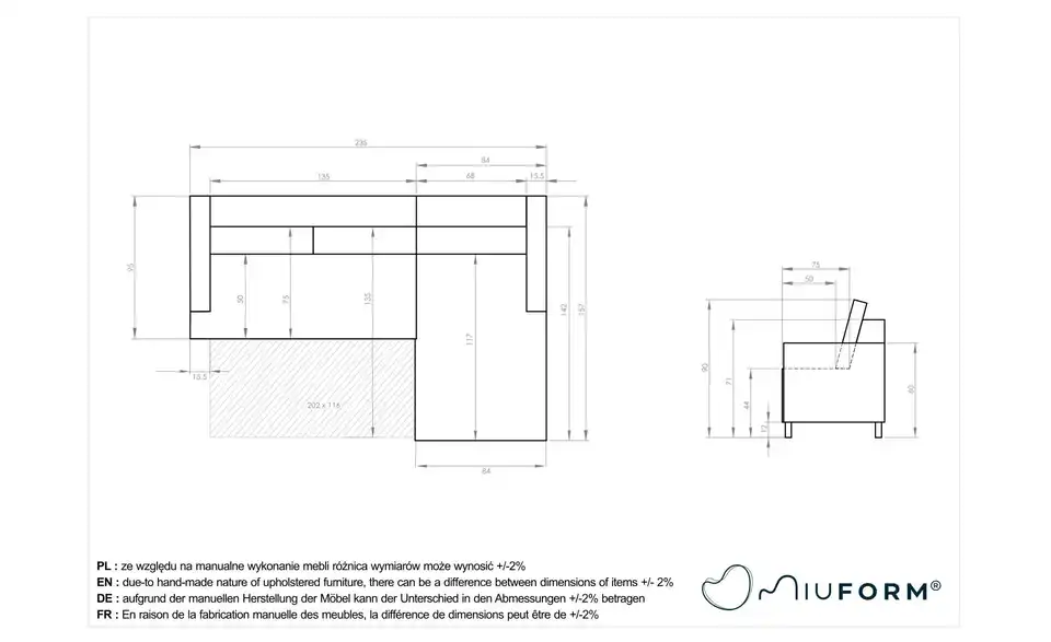 - Liegefläche Breite116 cm