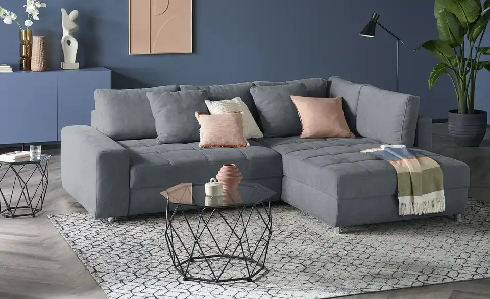Besonders viel Platz zum Ausstrecken bietet das Ecksofa Arissa de Luxe der Marke bobb. Die breite Sitztiefe von 81 Zentimetern lädt zum Entspannen mit der Familie oder Freunden ein. Das Ecksofa besitzt außerdem eine Schlaffunktion und bietet dann Platz für zwei Übernachtungsgäste. Durch die Boxspringpolsterung ist der Sitz- und Liegekomfort besonders hoch. Ein weicher Topper ist im Lieferumfang enthalten und deckt die gesamte Schlaffläche ab. Im Bettkasten können Sie Bettwäsche oder kleinere Kissen verstauen. Das Sofa in L-Form ist komplett mit einem strapazierfähigen Webstoff bezogen und kann problemlos auch frei im Raum stehen. Arissa de Luxe gibt es in verschiedenen Farbvarianten und passt dadurch in nahezu jedes Raumkonzept. Übrigens: Zu Arissa de Luxe sind zusätzliche Kopfstützen erhältlich. Diese können ganz einfach in die Laschen der Rückenkissen gesteckt werden.Lieferung & Versand