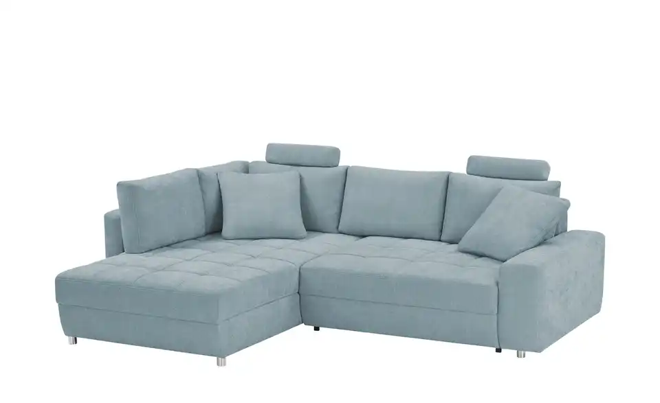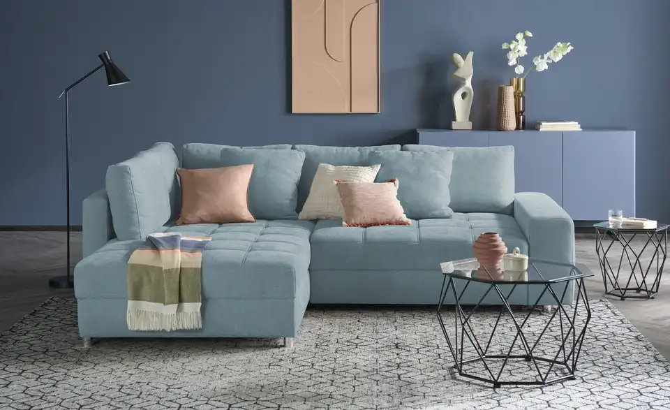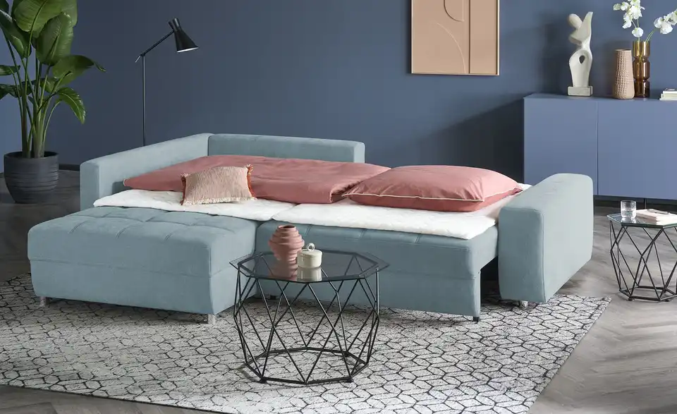 Besonders viel Platz zum Ausstrecken bietet das Ecksofa Arissa de Luxe der Marke bobb. Die breite Sitztiefe von 81 Zentimetern lädt zum Entspannen mit der Familie oder Freunden ein. Das Ecksofa besitzt außerdem eine Schlaffunktion und bietet dann Platz für zwei Übernachtungsgäste. Durch die Boxspringpolsterung ist der Sitz- und Liegekomfort besonders hoch. Ein weicher Topper ist im Lieferumfang enthalten und deckt die gesamte Schlaffläche ab. Im Bettkasten können Sie Bettwäsche oder kleinere Kissen verstauen. Das Sofa in L-Form ist komplett mit einem strapazierfähigen Webstoff bezogen und kann problemlos auch frei im Raum stehen. Arissa de Luxe gibt es in verschiedenen Farbvarianten und passt dadurch in nahezu jedes Raumkonzept. Übrigens: Zu Arissa de Luxe sind zusätzliche Kopfstützen erhältlich. Diese können ganz einfach in die Laschen der Rückenkissen gesteckt werden.Lieferung & Versand