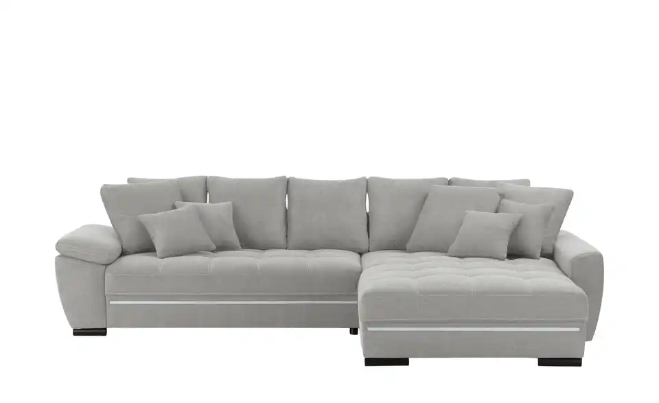 Perfekte Voraussetzungen zum komfortablen Ausruhen und Sitzen bietet diese Couchgarnitur. Dank des echt bezogenen Rückens kann die Marken-Couch von bobb frei im Raum platziert werden. Mit der bequemen Polsterung aus PUR-Schaum garantiert sie Ihnen hohen Sitzkomfort. Das Gestell ist aus Metall gefertigt. Um Zierkissen sowie Rückenkissen müssen Sie sich nicht kümmern, denn diese liegen dem Modell Fancy-LED schon bei. Das Sofa verfügt über eine Beleuchtung als integriertes Extra. Es bringt eine beidseitig montierbare Ottomane mit und nimmt insgesamt 323 x 89 x 224 cm ein. Ob mit einem guten Buch oder beim Fernsehabend: mit der Couch Fancy-LED sind Sie für jede Situation bestens vorbereitet und bieten sich und anderen höchsten Sitz- und Liegekomfort.Lieferung & Versand