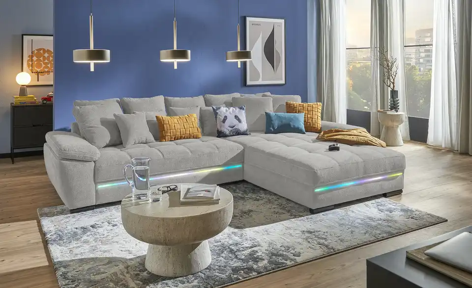 - Mehr zu Ausstattung / Funktion2 Armlehnenkissen6 Rückenkissen4 ZierkissenBeleuchtung mit Farbwechsel und Lichtlaufband über Fernbedienung steuerbar