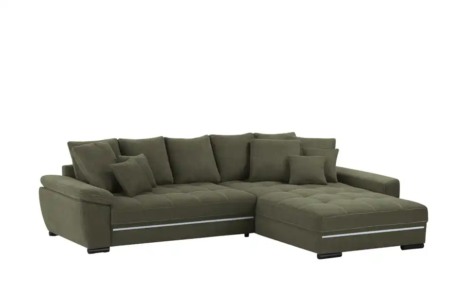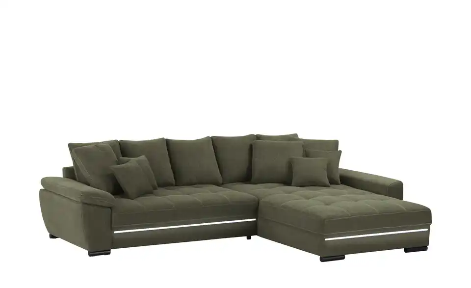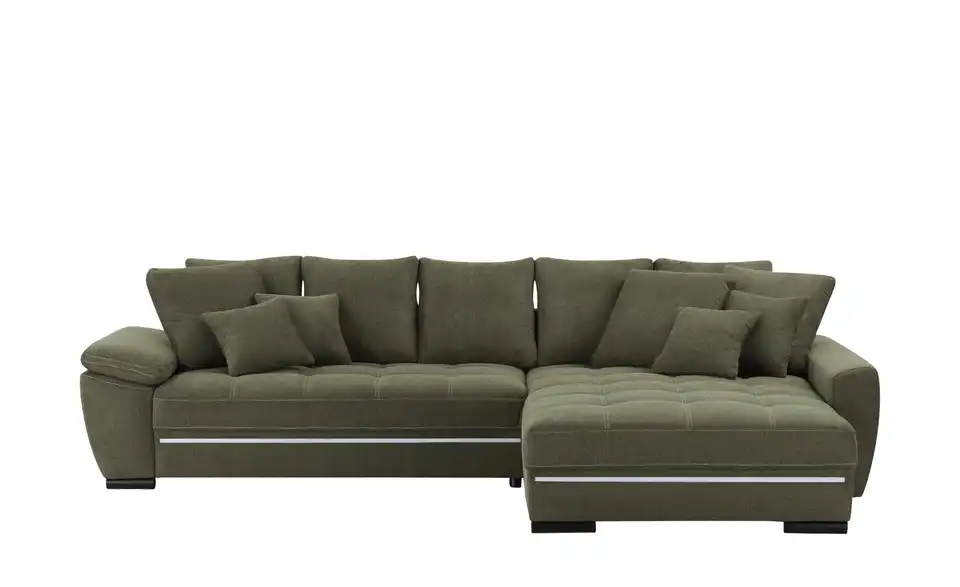 Perfekte Voraussetzungen zum komfortablen Ausruhen und Sitzen bietet diese Couchgarnitur. Dank des echt bezogenen Rückens kann die Marken-Couch von bobb frei im Raum platziert werden. Mit der bequemen Polsterung aus PUR-Schaum garantiert sie Ihnen hohen Sitzkomfort. Das Gestell ist aus Metall gefertigt. Um Zierkissen sowie Rückenkissen müssen Sie sich nicht kümmern, denn diese liegen dem Modell Fancy-LED schon bei. Das Sofa verfügt über eine Beleuchtung als integriertes Extra. Es bringt eine beidseitig montierbare Ottomane mit und nimmt insgesamt 323 x 89 x 224 cm ein. Ob mit einem guten Buch oder beim Fernsehabend: mit der Couch Fancy-LED sind Sie für jede Situation bestens vorbereitet und bieten sich und anderen höchsten Sitz- und Liegekomfort.Lieferung & Versand