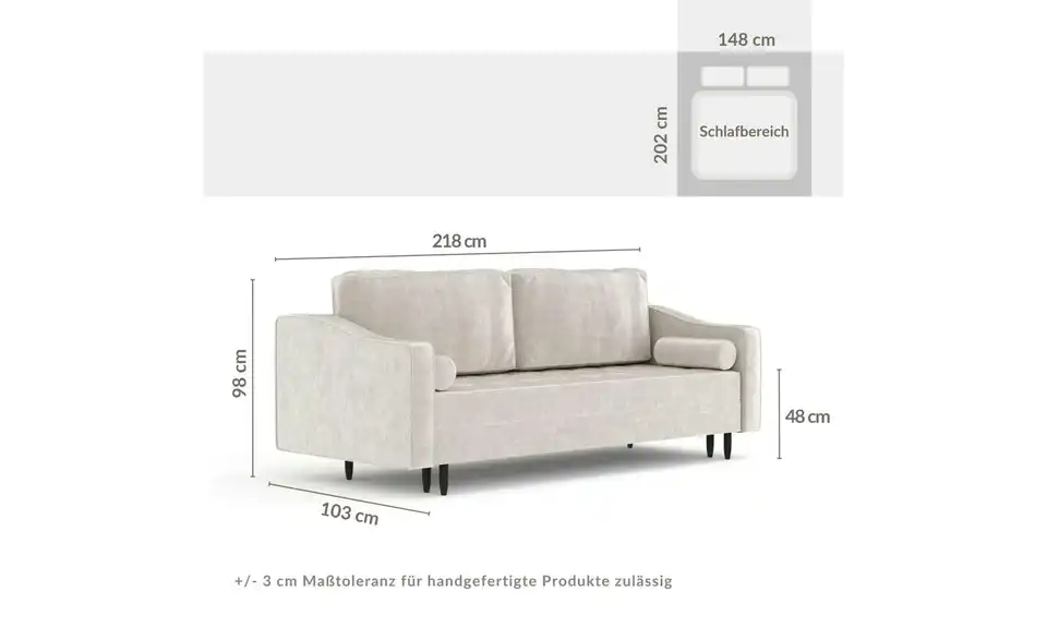 - Lieferumfang / mitgeliefertes Zubehör1 x Schlafsofa, 2 x dekoratives Kissen