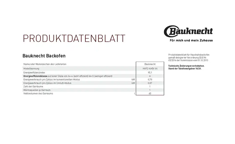 - Energieverbrauch Umluft / Heißluft0,87 kWh