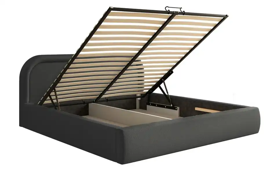 - Lieferumfang / mitgeliefertes ZubehörGraphitfarbenes Polsterbett mit Bettkasten 160x200 cm