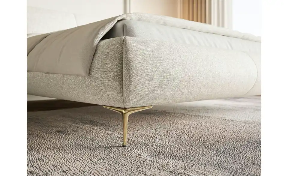 - Lieferumfang / mitgeliefertes ZubehörHellbeiges Polsterbett mit Bettkasten 140x200 cm