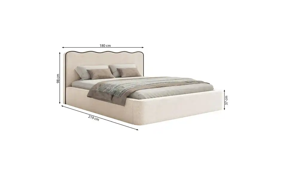 - Lieferumfang / mitgeliefertes ZubehörHellbeiges Polsterbett mit Bettkasten 160x200 cm