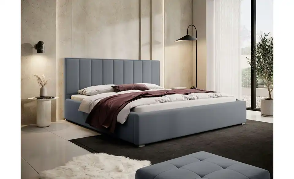 - Lieferumfang / mitgeliefertes ZubehörGraues Polsterbett mit Bettkasten 160x200 cm