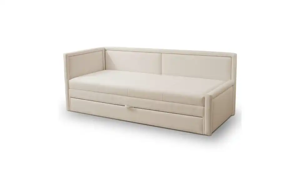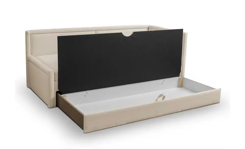 - Lieferumfang / mitgeliefertes ZubehörHellbeige Polsterliege mit Bettkasten 80x190 cm