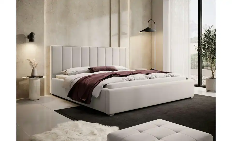 - Lieferumfang / mitgeliefertes ZubehörCremefarbenes Polsterbett mit Bettkasten 180x200 cm
