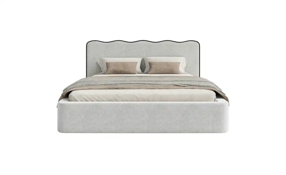 - Lieferumfang / mitgeliefertes ZubehörHellgraues Polsterbett mit Bettkasten 160x200 cm