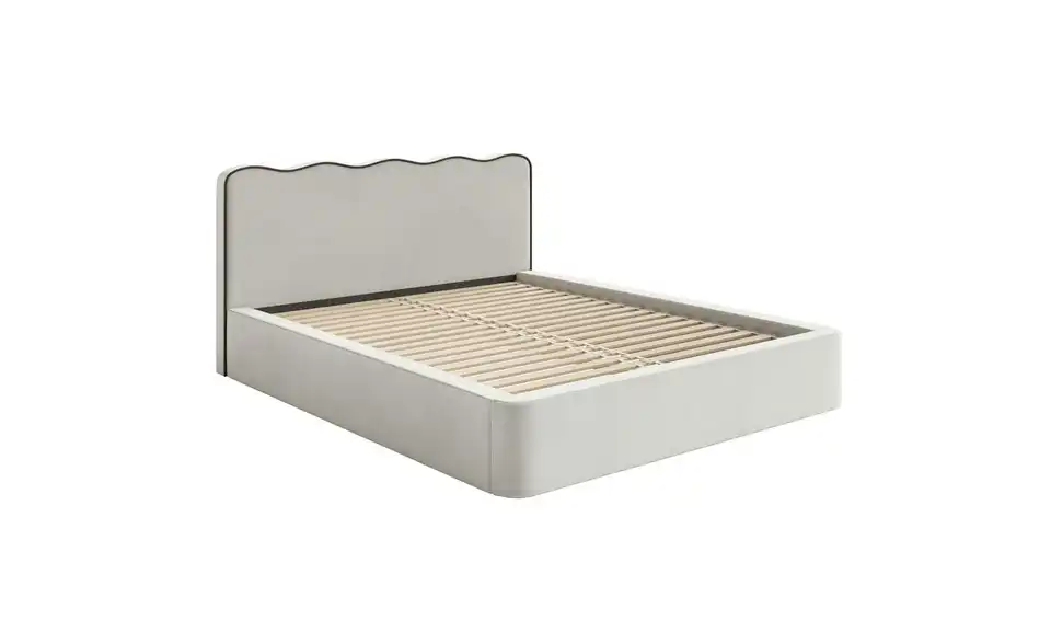 - Lieferumfang / mitgeliefertes ZubehörHellbeiges Polsterbett mit Lattenrost 200x200 cm