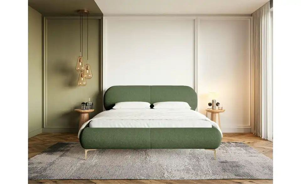 - Lieferumfang / mitgeliefertes ZubehörOlivgrünes Polsterbett mit Bettkasten 180x200 cm
