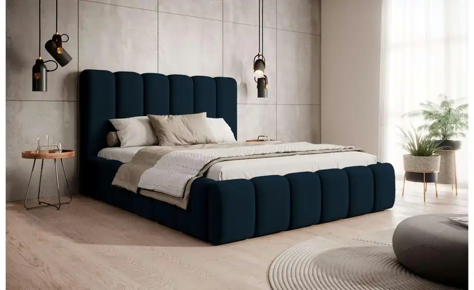 - Lieferumfang / mitgeliefertes ZubehörBlaues Polsterbett mit Bettkasten 180x200 cm
