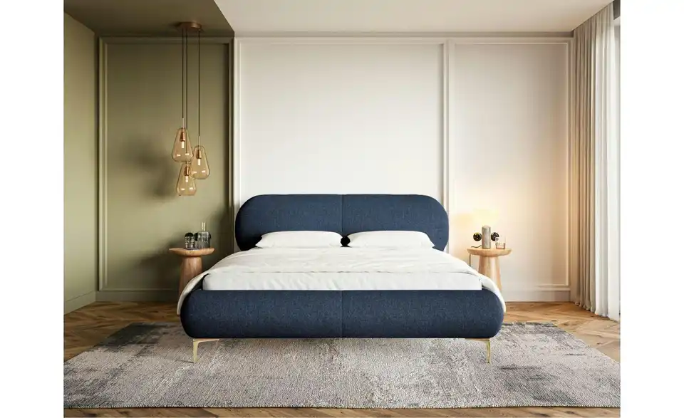 - Lieferumfang / mitgeliefertes ZubehörBlaues Polsterbett mit Lattenrost 180x200 cm
