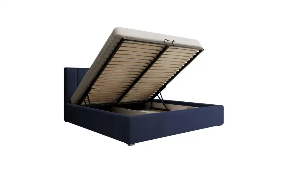- Lieferumfang / mitgeliefertes ZubehörBlaues Polsterbett mit Bettkasten 160x200 cm