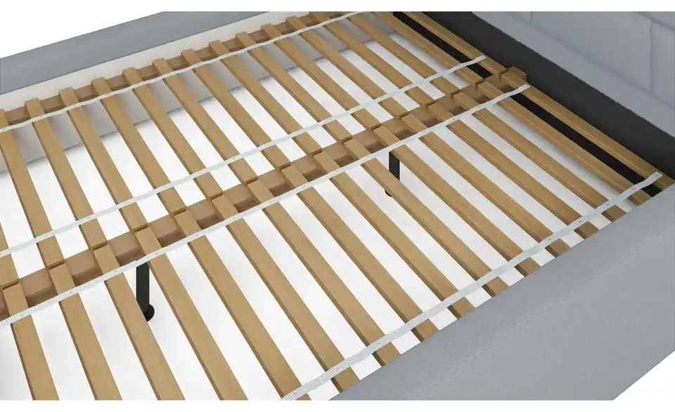 - Lieferumfang / mitgeliefertes ZubehörGraues Polsterbett mit Lattenrost 160x200 cm