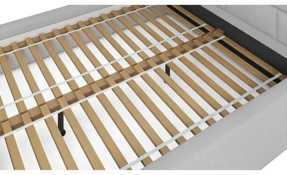 - Lieferumfang / mitgeliefertes ZubehörHellgraues Polsterbett mit Lattenrost 160x200 cm