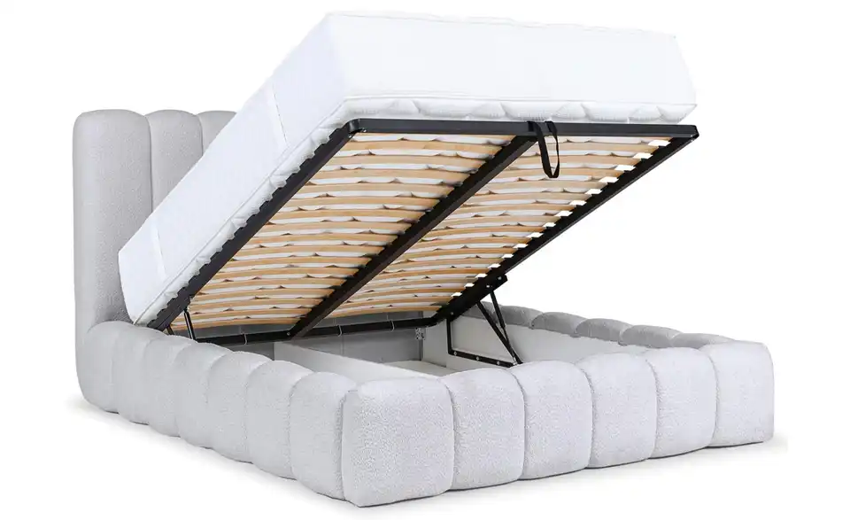 - Lieferumfang / mitgeliefertes ZubehörHellgraues Polsterbett mit Bettkasten 160x200 cm