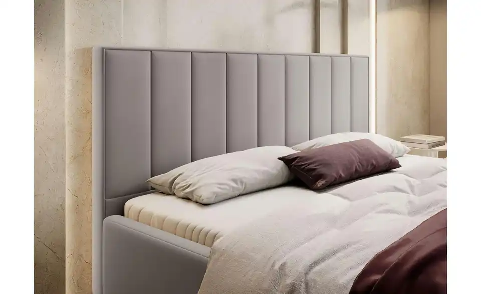 - Lieferumfang / mitgeliefertes ZubehörHellbeiges Polsterbett mit Bettkasten 160x200 cm