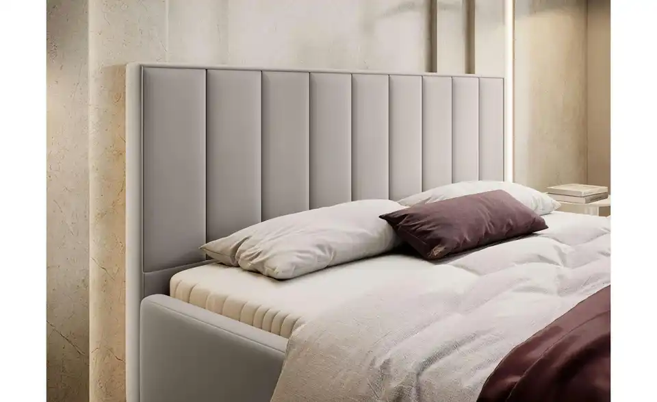 - Lieferumfang / mitgeliefertes ZubehörGraues Polsterbett mit Lattenrost 140x200 cm