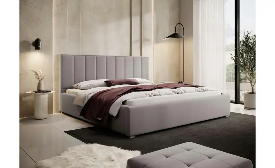 - Lieferumfang / mitgeliefertes ZubehörHellbeiges Polsterbett mit Lattenrost 180x200 cm