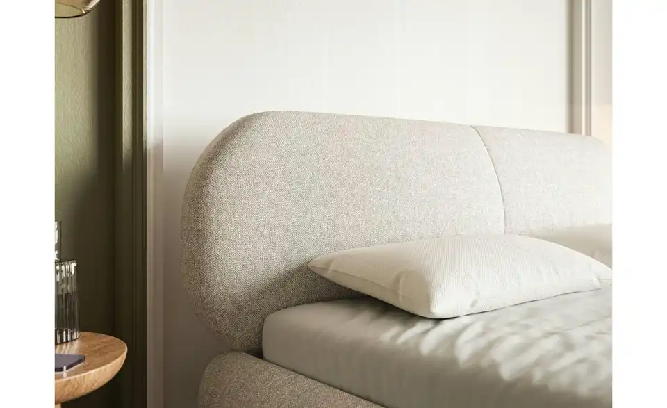 - Lieferumfang / mitgeliefertes ZubehörHellbeiges Polsterbett mit Bettkasten 180x200 cm