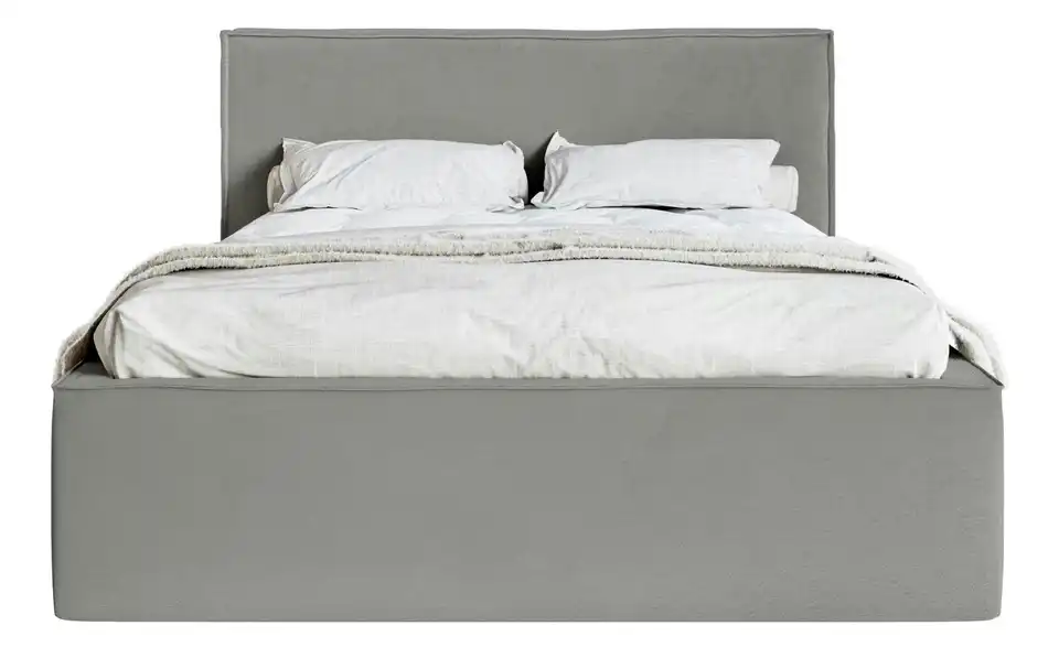 - Lieferumfang / mitgeliefertes ZubehörGraues Polsterbett mit Bettkasten 140x200 cm