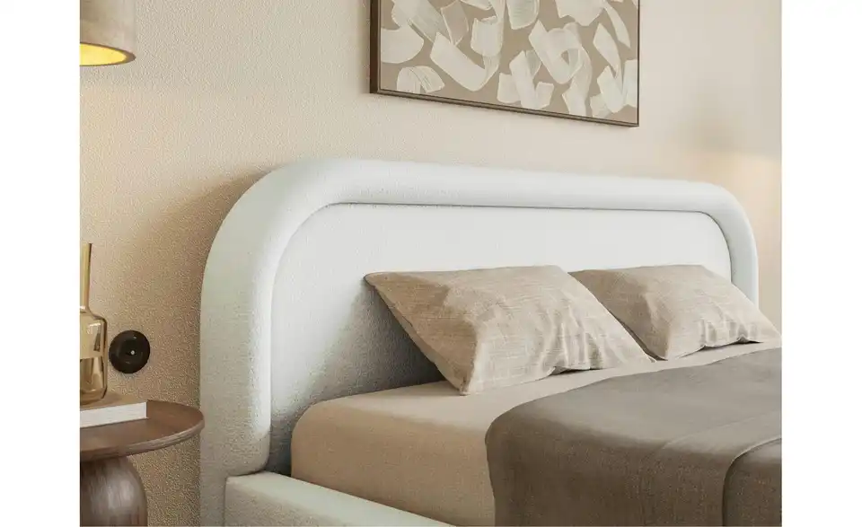 - Lieferumfang / mitgeliefertes ZubehörCremefarbenes Polsterbett mit Bettkasten 160x200 cm