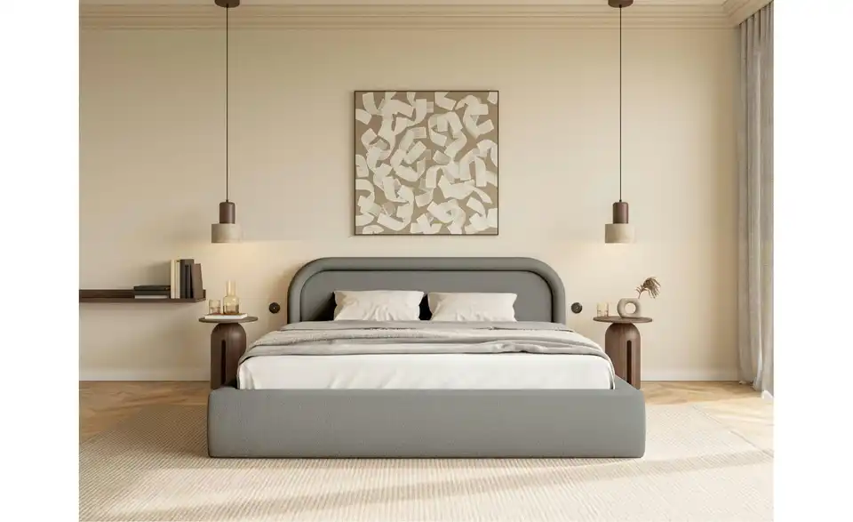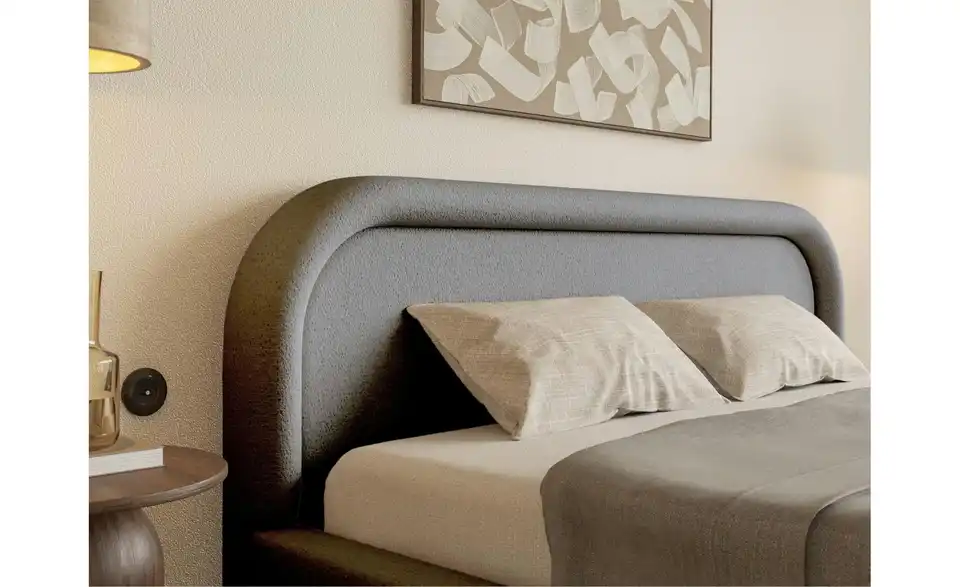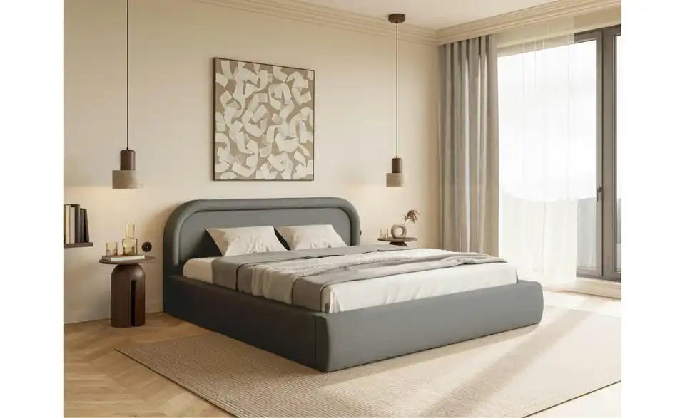 - Lieferumfang / mitgeliefertes ZubehörGraues Polsterbett mit Bettkasten 180x200 cm