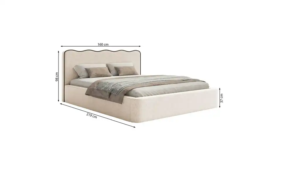 - Lieferumfang / mitgeliefertes ZubehörHellgraues Polsterbett mit Lattenrost 140x200 cm