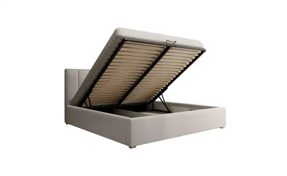 - Lieferumfang / mitgeliefertes ZubehörCremefarbenes Polsterbett mit Bettkasten 160x200 cm