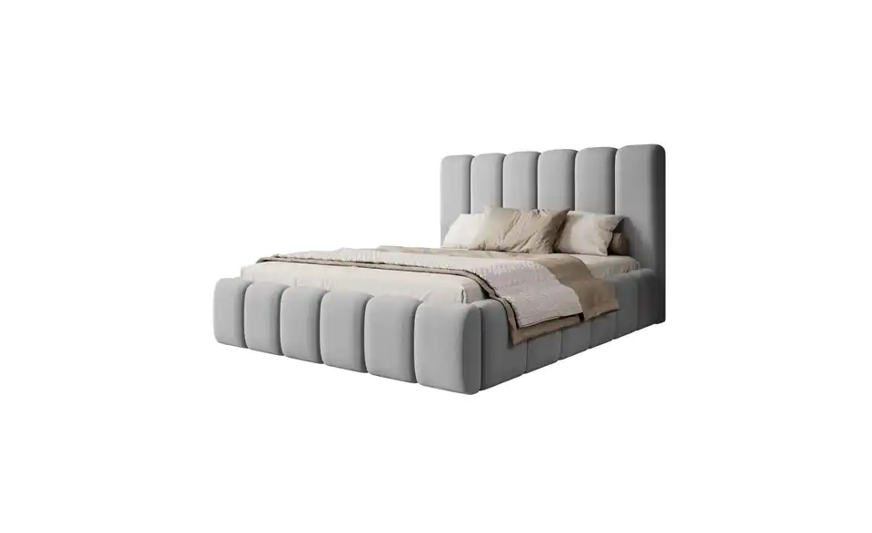 - Lieferumfang / mitgeliefertes ZubehörHellgraues Polsterbett mit Bettkasten 160x200 cm