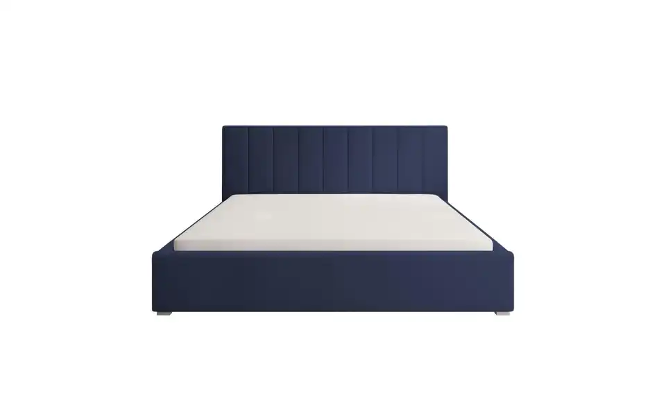 - Lieferumfang / mitgeliefertes ZubehörBlaues Polsterbett mit Bettkasten 200x200 cm
