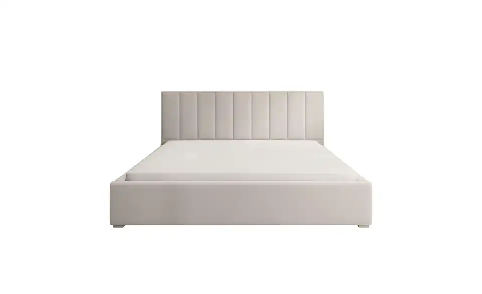 - Lieferumfang / mitgeliefertes ZubehörCremefarbenes Polsterbett mit Bettkasten 140x200 cm
