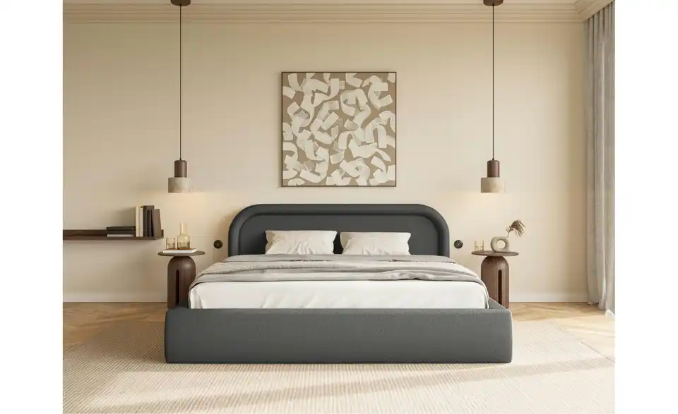 - Lieferumfang / mitgeliefertes ZubehörGraphitfarbenes Polsterbett mit Bettkasten 180x200 cm