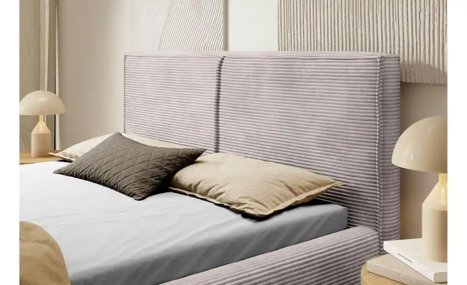 - Lieferumfang / mitgeliefertes ZubehörDunkelbeiges Polsterbett mit Bettkasten 180x200 cm
