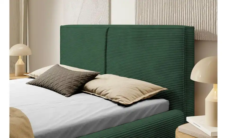 - Lieferumfang / mitgeliefertes ZubehörDunkelgrünes Polsterbett mit Bettkasten 180x200 cm