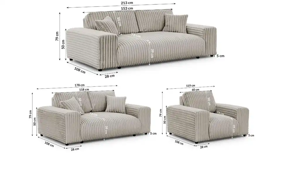 Polstergarnitur 3er-Set Mollis