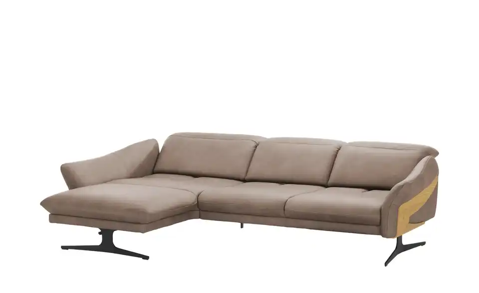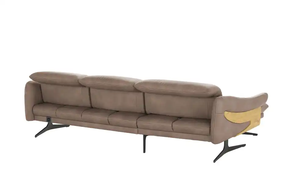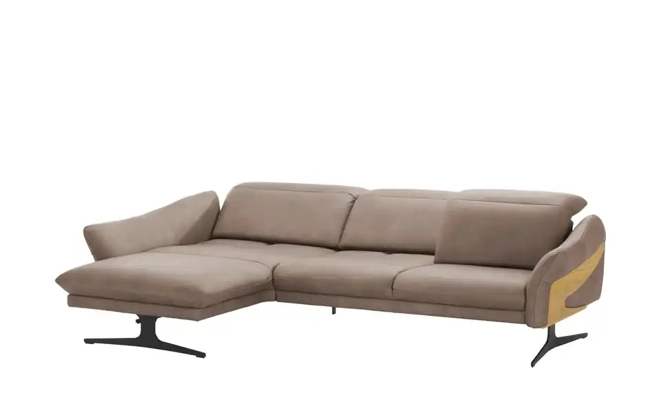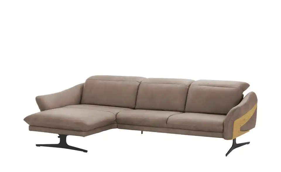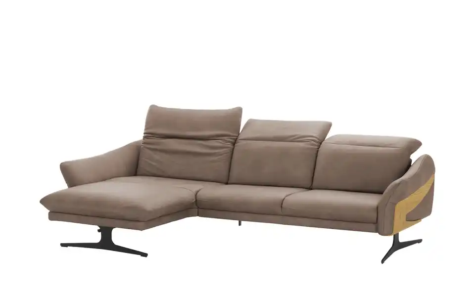 Filigrane Metall-Kufenfüße geben diesem Echtleder-Sofa eine schwerelose Optik. Die dunklen Kufenfüße aus gebürstetem Metall sind robust und tragen das hochwertige Echtleder. Attraktive Massivholz-Applikationen an den Außenseiten verleihen dem Ecksofa eine natürliche Note. Das Wildeichen-Holz wurde geölt und erhält dadurch einen warmen Ton. Legen Sie mit der elektrischen Funktion die Füße hoch, oder stellen Sie die Sitztiefe ganz nach Ihren Wünschen ein. Auch die Kopfteile können Sie im Handumdrehen verstellen. So passt sich dieses Sofa gekonnt Ihren Komfort-Bedürfnissen an. Polster gefertigt im bayrischen Taufkirchen: Von Menschen für Menschen. Die hochwertigen Funktionsmöbel der Marke himolla besitzen durchdachte Verstellfunktionen und begleiten Sie ein ganzes Möbelleben lang.Lieferung & Versand