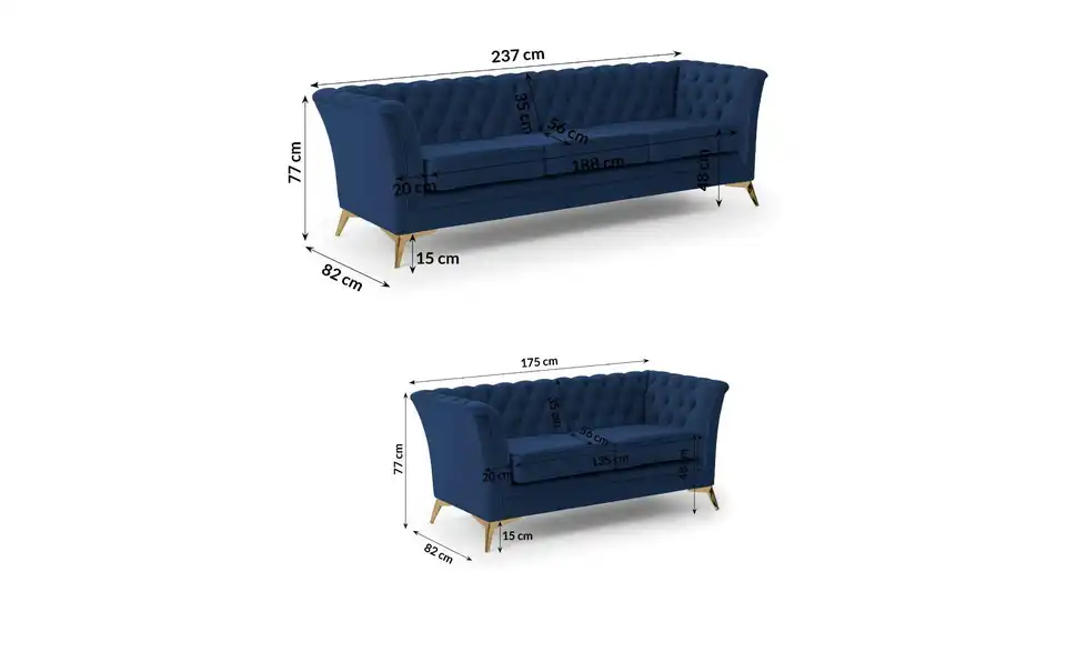 - Lieferumfang / mitgeliefertes Zubehör1 x 3-Sitzer Sofa, 1 x 2-Sitzer Sofa, Montagematerial