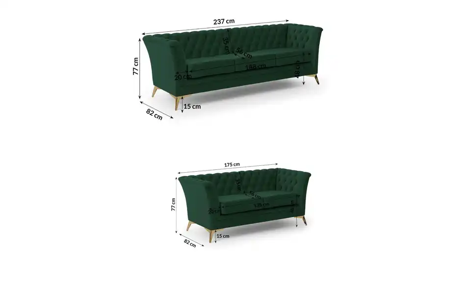- Lieferumfang / mitgeliefertes Zubehör1 x 3-Sitzer Sofa, 1 x 2-Sitzer Sofa, Montagematerial