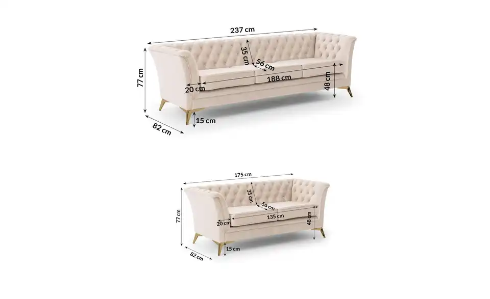 - Lieferumfang / mitgeliefertes Zubehör1 x 3-Sitzer Sofa, 1 x 2-Sitzer Sofa, Montagematerial