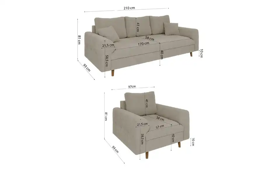 - Sofa 3-sitzig (BxHxT)210 x 93 x 81