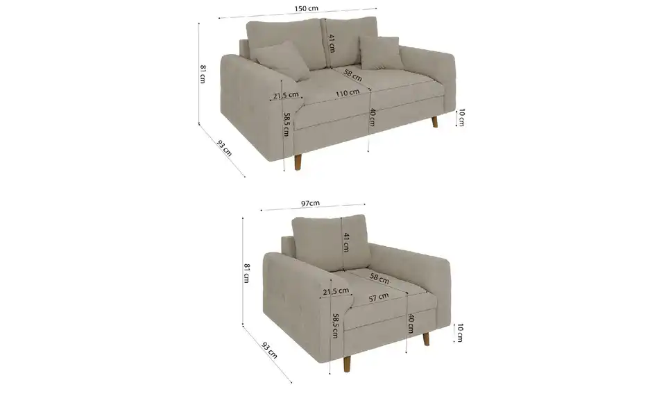 - Sofa 2-sitzig (BxHxT)150 x 93 x 81