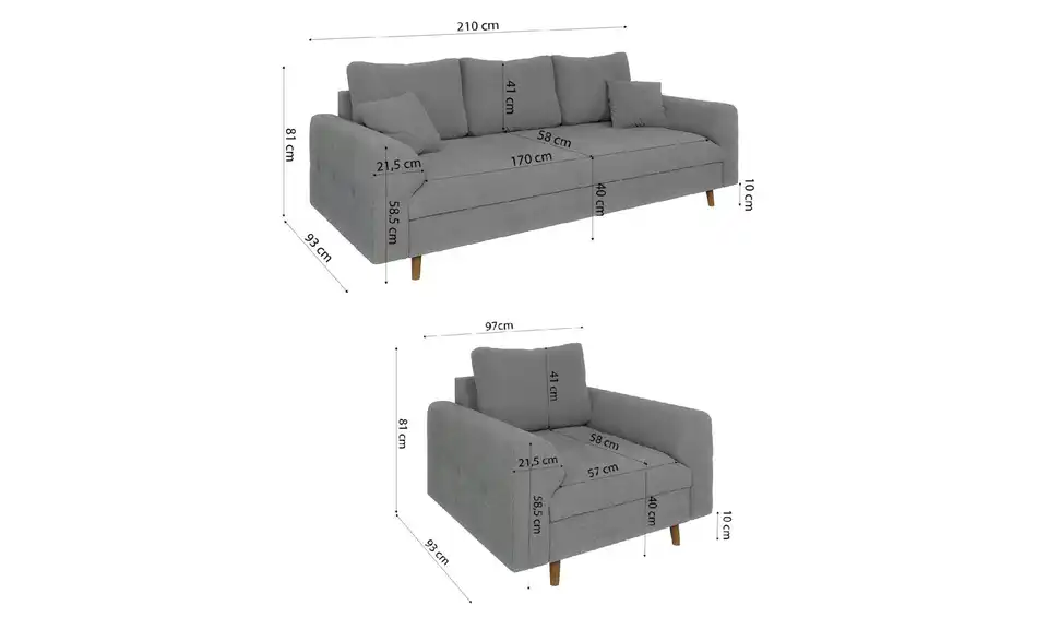 - Sofa 3-sitzig (BxHxT)210 x 93 x 81